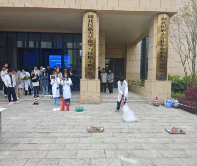 安全第一,生命至上。为强化实验室安全管理,提升师生应对实验室火灾事故的应急处置能力,筑牢校园安全防线,4月2日下午,学院联合生物与食品工程学院在工程中心B栋前举行实验室不同类型火灾应急演练活动。化学与环境工程学院党总支书记桑秋章,院长李国祥出席活动,保卫处、实验室建设与管理处、学院实验中心主任、实验室管理人员和学生200余人参加演练。