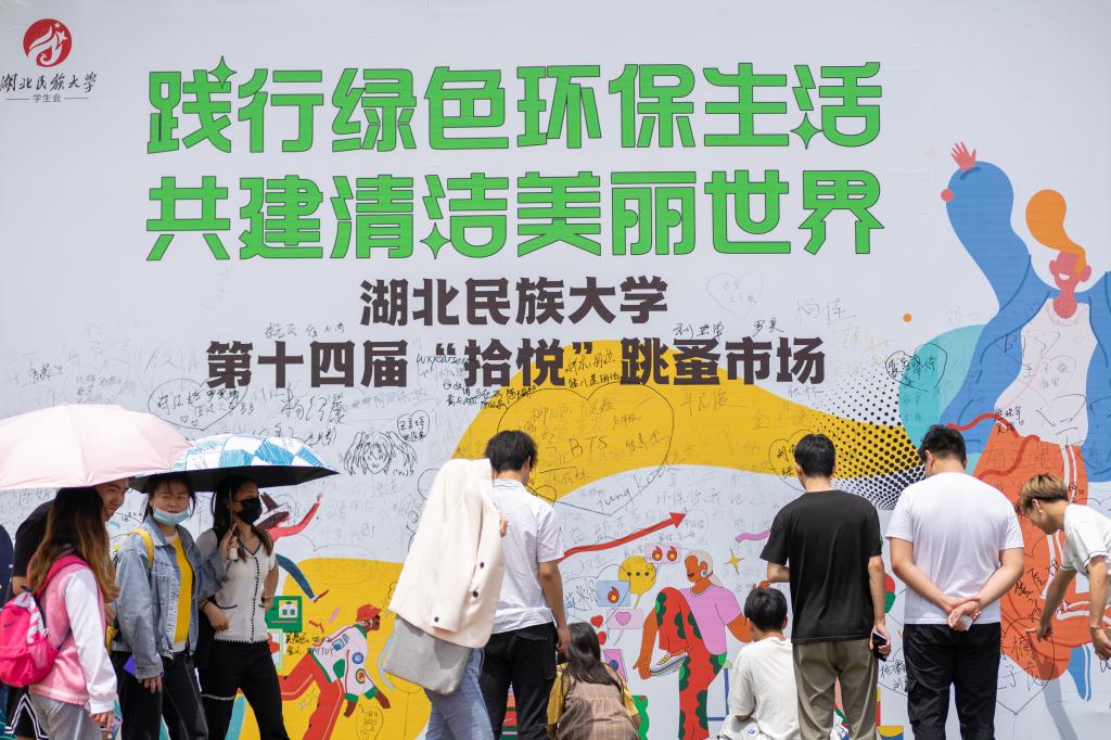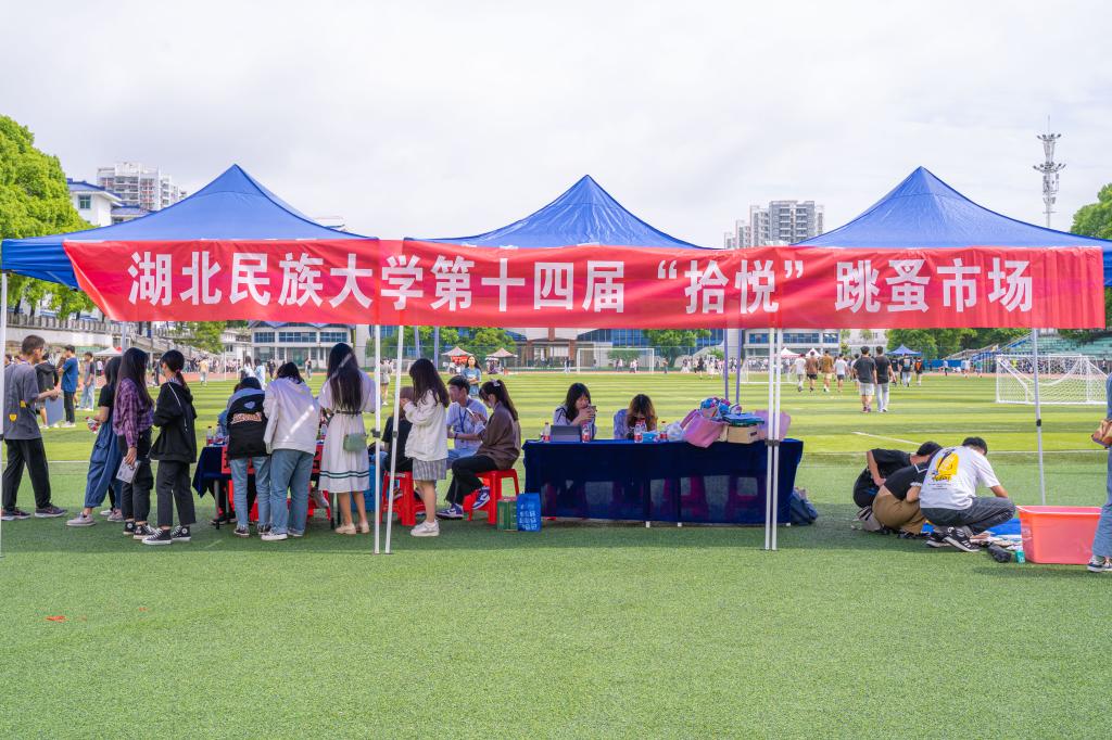 本网讯(通讯员 喻婷/文 杨松/图 陆宇/图 )5月29日,我校在民族体育场开展以“践行绿色环保生活,共建清洁美丽世界”为主题的第十四届“拾悦”跳蚤市场活动,全校同学积极参加。