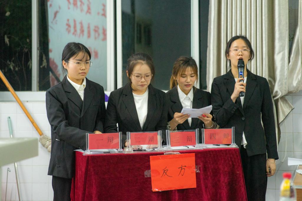 正方化学与环境工程学院与反方外国语学院围绕“人不轻狂枉少年”“人不轻狂亦少年”展开辩论。最终,正方一辩黄逸晟和反方二辩张悦荣获“优秀辩手”称号。比赛分为“开篇立论”“一对一攻辩”“攻辩小结”“自由辩论”“观众提问”“总结陈词”六个环节。开篇立论,双方开宗明义。正方提出,少年具有更多可能性,应不辜负青春年华,坚持自我。反方则从轻狂对价值观的影响、少年本身的能力及轻狂的后果破题立论。接着,在攻辩与自由辩论环节,双方辩手据理力争,你来我往,将整场比赛推向高潮。辩手们激烈讨论轻狂是否有利于未来的发展,明确轻狂与狂妄的区别。在随后的观众提问环节,双方辩手沉着冷静,就所持观点耐心的回答同学们的问题。