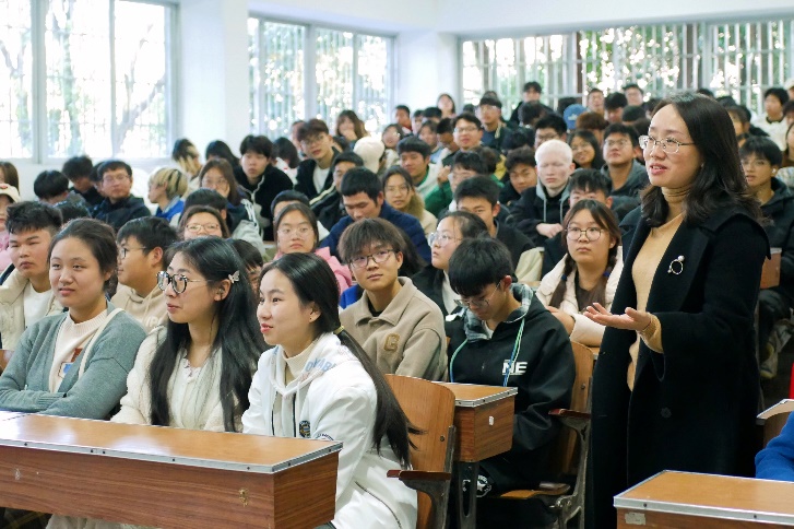 杨家勇老师以“充实美好大学生活,助力崭新的教书生涯” 为题,从“个人工作经历”、“王国维的人生三重境”、“如何当好一名新教师”、“享受快乐的教师生活”四个方面进行讲述。他认为只要奋斗,一切皆有可能,并从个人工作经历出发,分享了自己从求学到成为恩施高中化学教科室主任这一段漫长的经历。接着,他以王国维的三重人生境界来表明自己对化学专业学生的希望,杨家勇老师认为大学是人生的起跑线,进入大学后要强健体魄,并举出自己所带的一位高位截瘫学生考上西北工业大学的案例诠释“衣带渐宽终不悔,为伊消得人憔悴”的现实意义。杨家勇老师还重点讲述了如何当好一名新教师,他希望同学们认清自身的优势和短板,牢记好教师的基本要求,勇担重任,树立终身学习的理念,学会及时总结与反思,在备课时做到“二研”和“五个关注”,在上课时要做到心中有框架,有思路,有想法。最后,杨家勇老师表示自己很享受教师生活,这里有他爱的学生和学生对他的爱,有志同道合的同事,有展示才能的平台。讲座结束后,进行了现场问答环节,杨家勇老师结合自身成长经历,用教学实例对所提问题进行回答。
