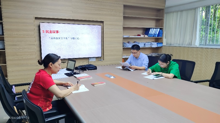 本网讯(通讯员 彭文萍 李松泽)4月25日,我院化学与分子科学系党支部在2206党员活动室开展以“总体国家安全观·创新引领10周年”为主题的党日活动。杨艳担任主持人。