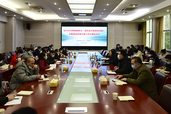 州委统战部副部长,州民宗委党组书记、主任向莉萍以《深入学习贯彻新修订<湖北省宗教事务条例> 不断提高宗教工作法制化水平》为题进行了专题辅导。向莉萍向大家介绍了当前国际国内宗教基本情况,宣讲了中央对宗教工作的新部署新要求,解读了新修订的《湖北省宗教事务条例》,分析了高校抵御境外利用宗教渗透和防范校园传教面临的严峻形势,并就加强民族团结铸牢中华民族共同体意识,切实做好学校民族宗教工作提出了要求和建议。(责任编辑 廖希为)
