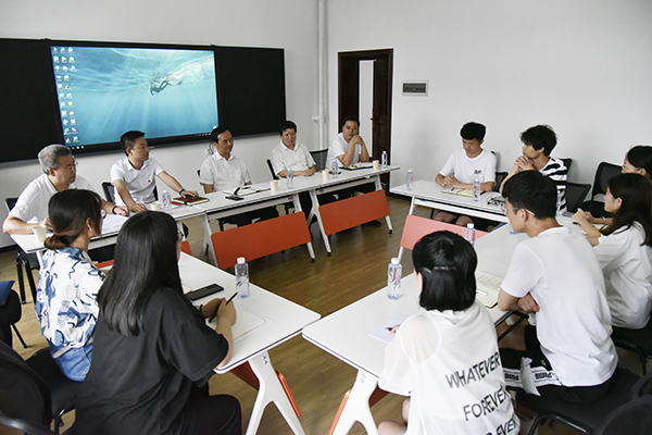 本网讯 7月1日,党委书记向前进在文学与传媒学院智慧教室与学生代表座谈,党委副书记、副校长汪兴平出席会议,党办(校办)、学工处、研究生处等相关单位负责人参加座谈。