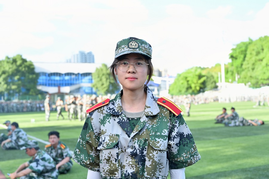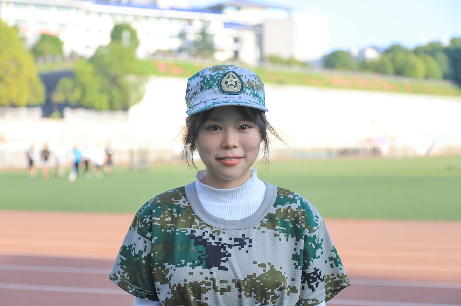 站军姿、练齐步、踢正步、转身、蹲下、起立便是她的军训日常。“对于军训,我最深切的感受就是累。无数次重复的口令让教官嗓音变得沙哑,无数次对动作的纠正使我们精疲力竭。”军训是进入大学的第一门必修课,也是新生开启大学生活的强心针。穿过军训的时间长廊,回首九日来的训练里程,外国语学院英语专业谭柯艺分享道:“军训中面对的不同考验,给予我金石般的顽强意志。湿透的军训服,落在地上的汗滴,彰显出不屈服、不放弃的精神品质,这正是军训的意义所在。”宝剑锋从磨砺出,梅花香自苦寒来,谭柯艺怀揣着满腔热情去探寻无与伦比的人生,只争朝夕,以奋斗点缀青春,尽管前方惊涛骇浪,她仍砥砺前行。