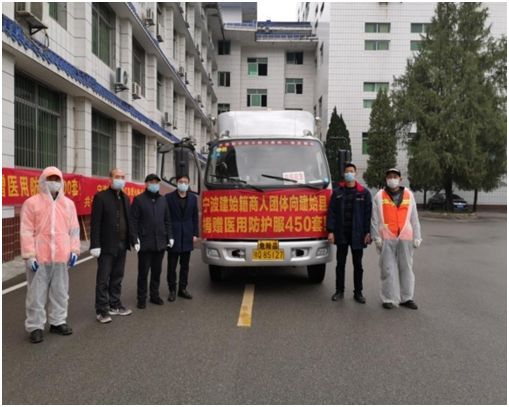 宁波恩施商会捐赠医用手套155000双、防护服400套、消毒液500桶、口罩5000个、医用口罩10000个、N95口罩2000个、KN90防尘口罩400个、护目镜7400个、消毒凝胶7个、消毒液28吨,宁波慈溪捐赠护目镜100个,上海湖北恩施商会捐赠防护服1300套。