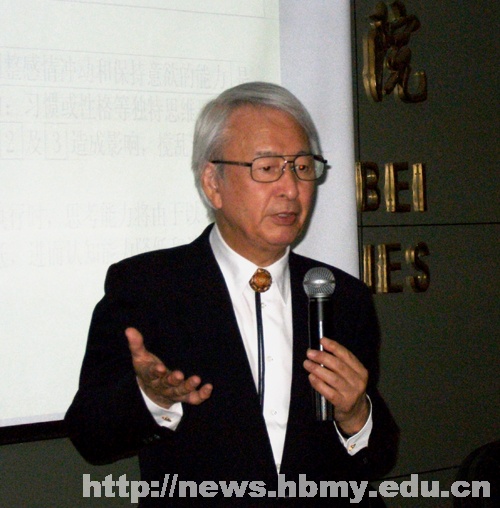 本网讯(记者涂才学 通讯员宋凡)为加强学术交流,传授老年痴呆防治知识,5月11日晚,医学院五楼会议室学术氛围浓厚,现场座无虚席。日本玉殿场高原病院院长、我校客座教授清水允熙教授再次莅临医学院为我校学子作关于“高龄痴呆临床研究新进展”专题学术讲座,我国留日医学博士寇华胜担任翻译。医学院院长袁德培同200余名学生一道共同听取了讲座。
