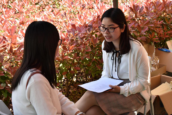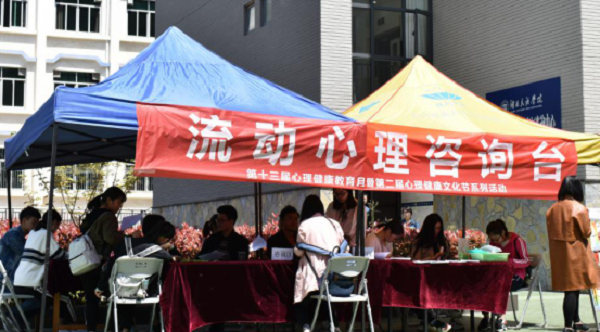 本网讯(记者 羿林英/文 叶登屹/图)让心理咨询走到“阳光”下,让心理健康走到生活中,4月9日,我校大学生心理健康教育中心开展“流动心理咨询台”活动。此次活动为期4天,分别在修远楼、学生资助中心门口和北苑餐厅门口等人流量较多的地方设点,我校心理咨询中心专兼职教师担任此次活动的咨询老师。