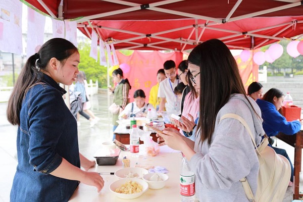现场有工作人员将土特产实物一式两份放置作品旁,一份供学生试吃,一份用于观赏。色香味俱全的美食,路人纷纷驻足,品尝美味。绘画组中,来自医学院的1号选手龚天仪的“橘”以明亮的色彩生动形象地表现出橘的各类形态,现场的柑橘清香宜人、甘甜可口,获得在场学生一致好评;编写组中,来自外国语学院的3号选手丁奕岚的作品“十八街麻花”,介绍麻花的历史起源和独特的制作工艺,现场的麻花甜而不腻、鲜香爽脆,令人垂涎欲滴。最终,龚天仪、丁奕岚分别夺得绘画组和编写组冠军。