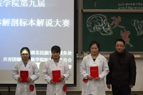 本网讯(记者 望欣欣 任宇婕/文 陈佳琦 郑渝曦/图)12月11日,我校在修远楼5B509教室成功举办第九届人体解剖标本大赛。医学院党委副书记张蕊,学生科科长向驰,学生工作科分管团委工作的张鼎老师出席大赛。该院解剖室教研室老师李国贵、陈龙菊、谭文波、谭刚、吴刚担任评委。