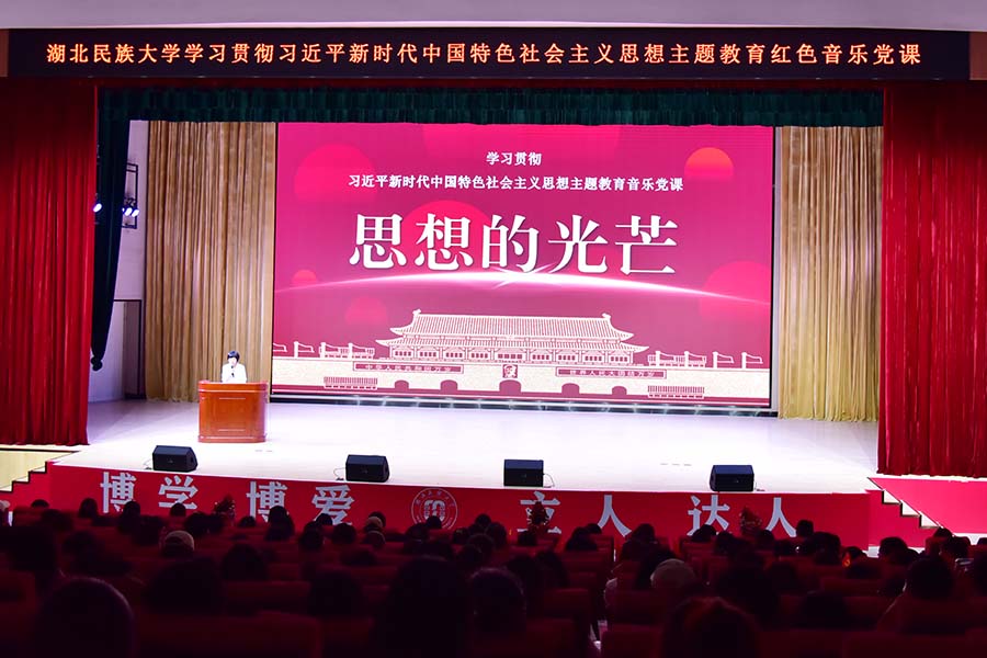 365电子娱乐官方网站所处的恩施土家族苗族自治州,既是民族地区,又是革命老区。在主题教育中,学校结合立德树人根本任务,守正创新,务求实效,充分利用当地红色文化资源,深入挖掘本土传统民族文化,以红色音乐党课为载体,加强党的创新理论武装,将独有的文化资源禀赋融入为党育人、为国育才的教育使命,引领新时代大学生传承红色文化、赓续历史文脉、谱写当代华章,进一步推动了主题教育走深走实、见行见效。