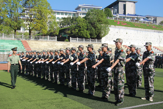校党委副书记、副校长汪兴平为军训团授旗 李兰/摄