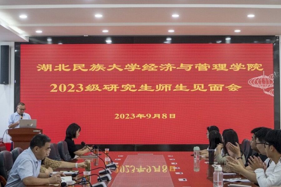 本网讯(记者 熊伊人/文 周隆宇/图)2023年9月8日,经济与管理学院2023级研究生师生见面会在经管楼附303会议室举行。经济与管理学院党委书记、博士、副教授、硕士生导师陈霞,经济与管理学院博士、教授、硕士生导师王涛、谭宇,365电子娱乐官方网站MPAcc中心主任、博士、副教授、硕士生导师卢秋声,经济与管理学院博士、副教授、硕士生导师吕宗耀、冉瑞恩、高华峰、张建忠、王俊平,研究生辅导员宋羽老师应邀出席本次研究生师生见面会。经济与管理学院副院长、教授谭志喜担任本次见面会主持人。