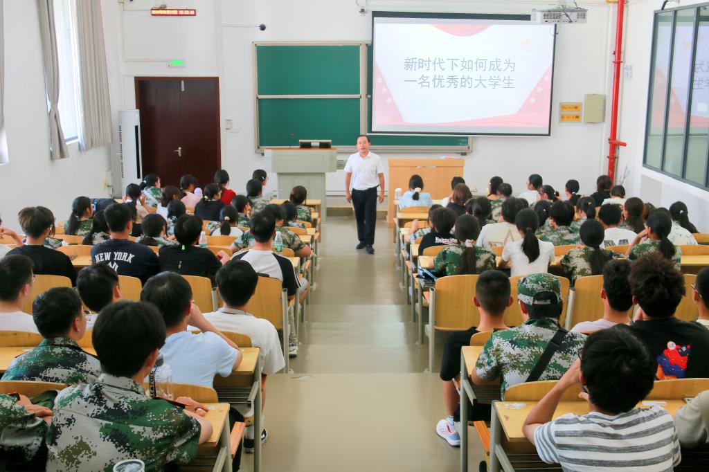 冉瑞恩讲话。他首先对全体新生的到来表示热烈欢迎,并从如何充实度过大学生活、培养生活习惯、建设跨学科知识体系等方面帮助新生明确自身目标,融入大学生活。同时,他提醒新生珍惜时光、认真学习,积极参与校园活动,主动与教师进行沟通,提升自身人际交往能力,为未来择业、就业打下坚实基础,努力为当代社会发展贡献自身力量。