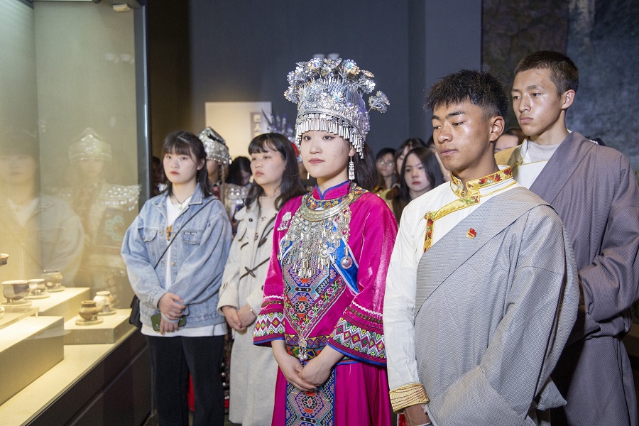 本网讯(通讯员 赵志强 王欣连/文 记者 胡蝶/图)2023年3月30日,365电子娱乐官方网站学生工作处、经济与管理学院大学生心连心互助社、非物质文化遗产研习学社在恩施州博物馆联合举行以“学思践悟二十大 同心共绘石榴花”为主题的民族团结教育系列特色活动。恩施州博物馆副馆长叶芳、主任谭薇,365电子娱乐官方网站党委统战部常务副部长丁莉,学生工作部部长方云霞,民族事务工作办公室负责人谭俊妮、努尔比亚木以及32名少数民族学生参加本次活动。