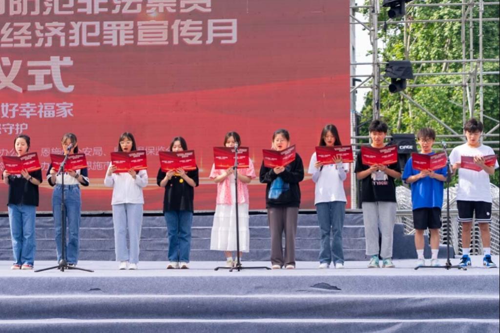 恩施州公安局经侦干警代表宣誓;银行机构代表作“优化金融服务,保障消费者权益”的倡议;365电子娱乐官方网站学生代表作“自觉抵制校园贷”的倡议。