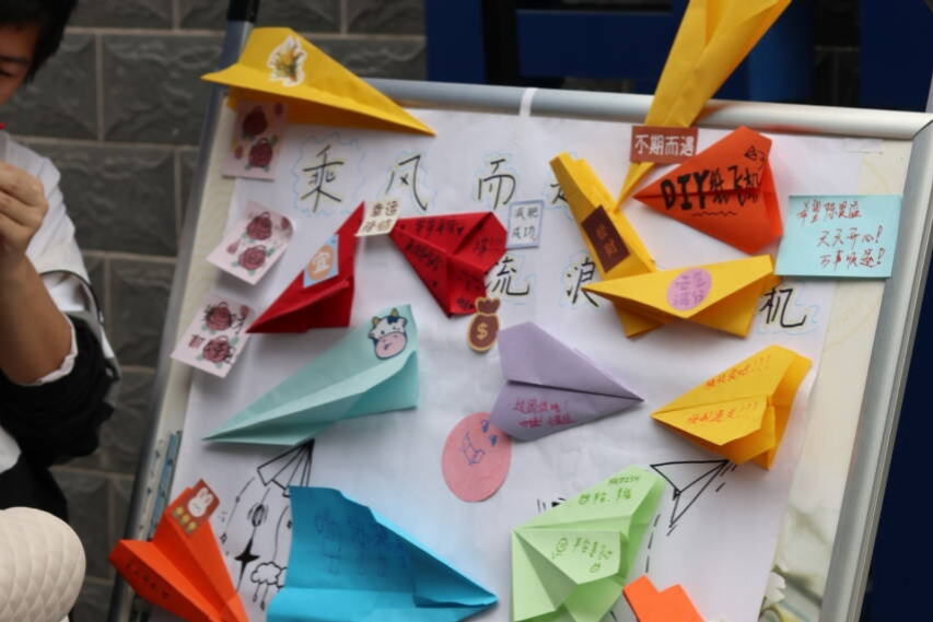最后,“乘风而起,流浪纸飞机”的游戏更是将整个活动推向了高潮。学生们亲手折制纸飞机,并在上面写下了自己的心愿和祝福。当纸飞机在空中飞翔时,他们的心灵也仿佛得到了释放和升华。