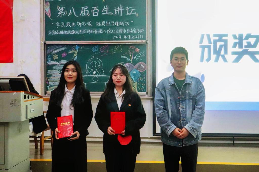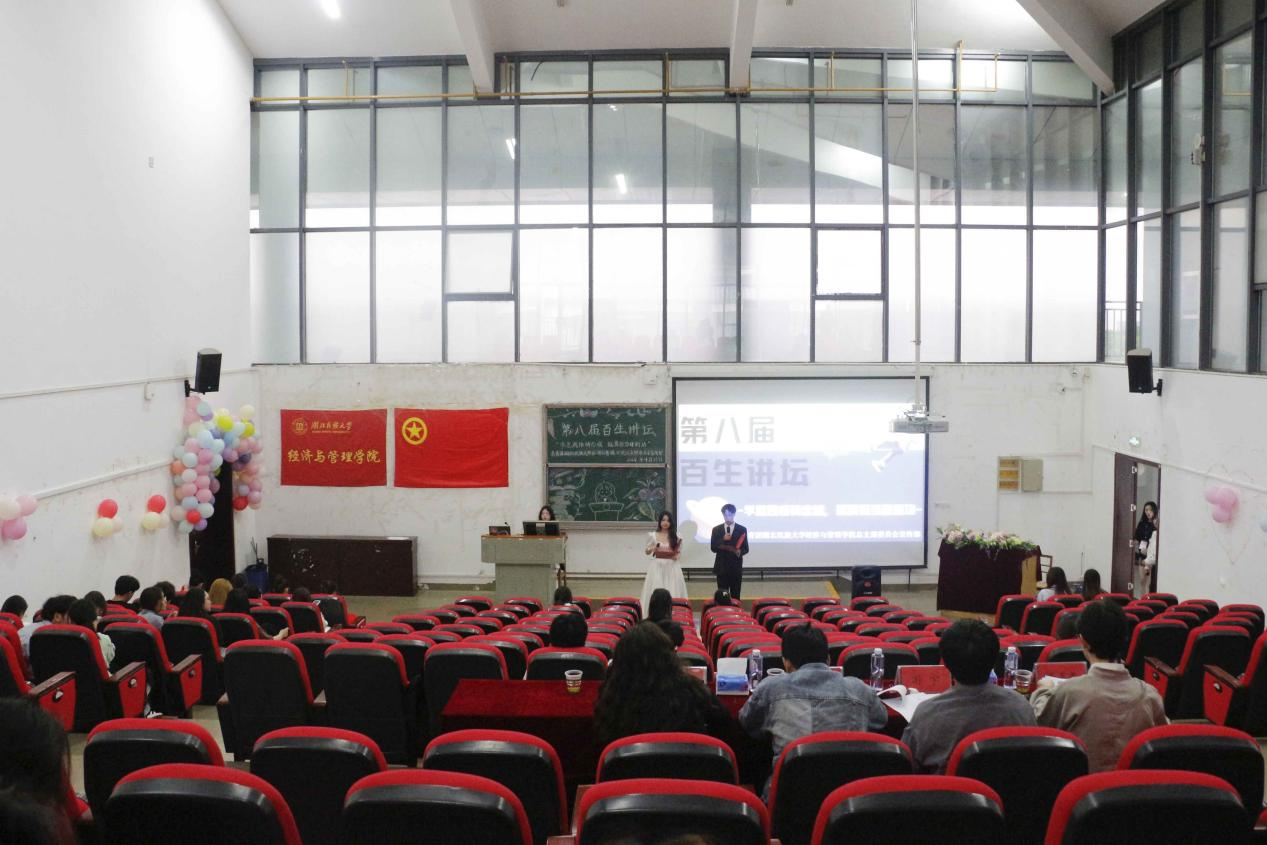 本网讯(记者 周京京 罗爽/文 布威 肖亚男/图)2024年4月27日,经济与管理学院联合一站式学生社区以“学思践悟铸思诚 挺膺担当建新功”为主题的第八届“百生讲坛”决赛在修远楼5B404报告厅隆重举行。经济与管理学院团总支书记唐桢坤、MPACC教育中心主任游宇、学生科辅导员解丽娟、亚克甫·哈米东应邀出席本次活动并担任评委。