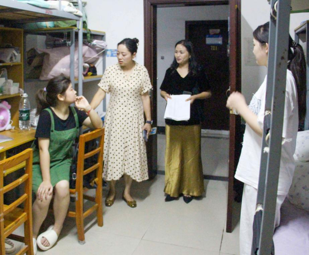 在走访中,陈霞书记与新生亲切交流,了解新生入学适应情况及诉求,对新生关心的问题给予耐心解答;提醒学生注意通风,做好个人及寝室卫生,遇到困难及时与班主任、辅导员沟通。同时,陈霞书记告知学生军训注意事项及入学教育安排,提醒学生做好防晒及预防中暑。