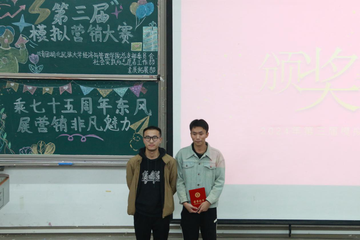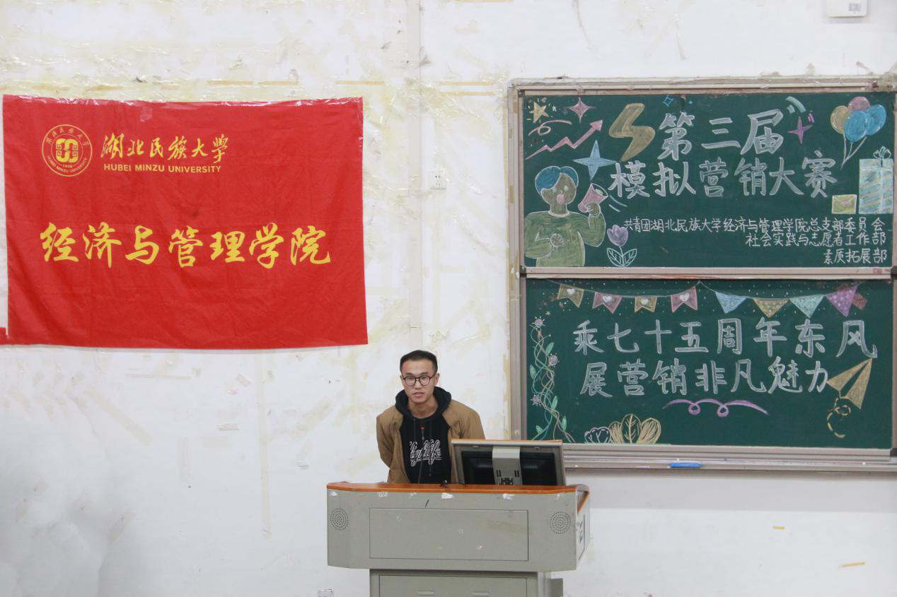 本网讯(记者 刘庆怡 陶君然 见习记者 陈诗淇 冯柯嘉/文 记者 毛莉 见习记者 谭元媛/图)2024年11月21日,经济与管理学院联合“一站式”学生社区以“乘七十五周年东风 展营销非凡魅力”为主题的第三届模拟营销大赛决赛在修远楼5B403报告厅举行。经济与管理学院团总支书记杨睿、学生科辅导员唐桢坤应邀出席本次大赛并担任评委。