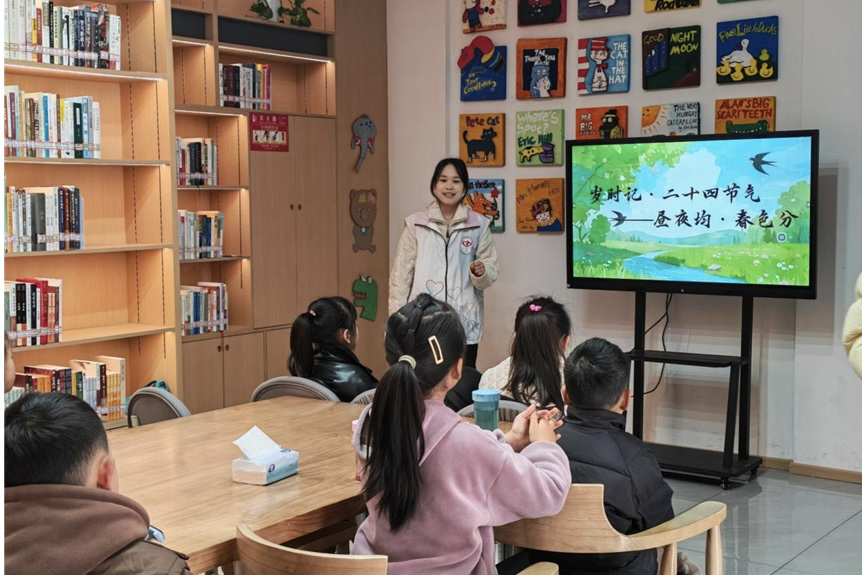 3月22日上午,“趣味学堂”首期活动在恩施书房西湖分馆举行。志愿者通过图片展示、视频播放、互动问答等形式,向孩子们讲解春分天文知识、物候特点及民俗文化。