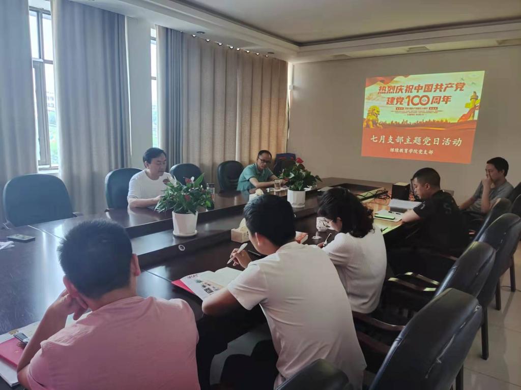 继续教育学院党支部于2021年7月1日在407会议室举行7月支部主题党日活动。活动由党支部书记雷随斌主持。