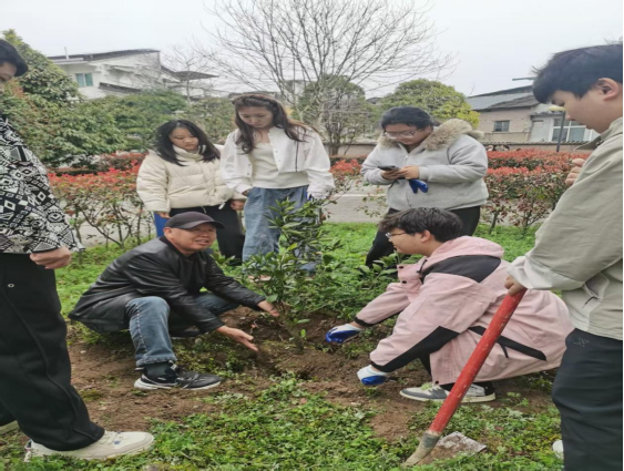 上午九时,全体人员在学校黄家峁学生公寓集合。活动伊始,阳辉副院长发表动员讲话。他指出,植树造林不仅是改善生态环境的重要举措,更是推动可持续发展的生动实践,他勉励全体师生以此次劳动为契机,用实际行动为公寓环境增添生机,为建设美丽校园贡献力量。随后,绿化科李老师讲解了植树的要领与注意事项,学生会园艺部干事为大家分发了铁锹、水桶等劳动工具。在老师们的带领下,大家热情高涨,分工明确,默契配合。有的挥锹铲土,有的扶苗填坑,有的踏土夯实,有的提水浇灌,每个环节都做得一丝不苟、认真细致。经过数小时的辛勤劳作,一棵棵新栽的树苗在春日暖阳下迎风挺立,为初春的大地增添了一抹新绿。