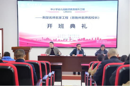 (通讯员杨斌 审核刘贤锋)12月9日下午,我校承办的“省培计划(2023)”——荆楚名师名家工程(恩施州名师名校长)培训项目在学校顺利开班。来自全州各初中、小学的47名知名校长、学科教师参加了开班典礼。