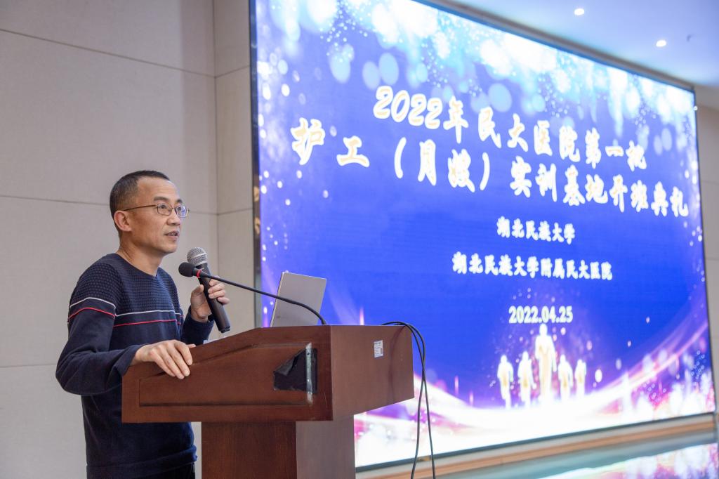 2022425日天气晴朗,365电子娱乐官方网站附属民大医院喜庆祥和,第一批护工(月嫂)实训基地开班仪式在其综合楼10楼会议室隆重召开。湖北民族大附属民大医院副院长石磊、365电子娱乐官方网站继续教育学院副院长刘贤锋、恩施州德慧母婴健康管理有限公司总经理周贤出席开班仪式,参加开班仪式的还有民大医院各科护士长及参训护工、月嫂学员,民大医院护理部副主任朱亚莉主持会议。