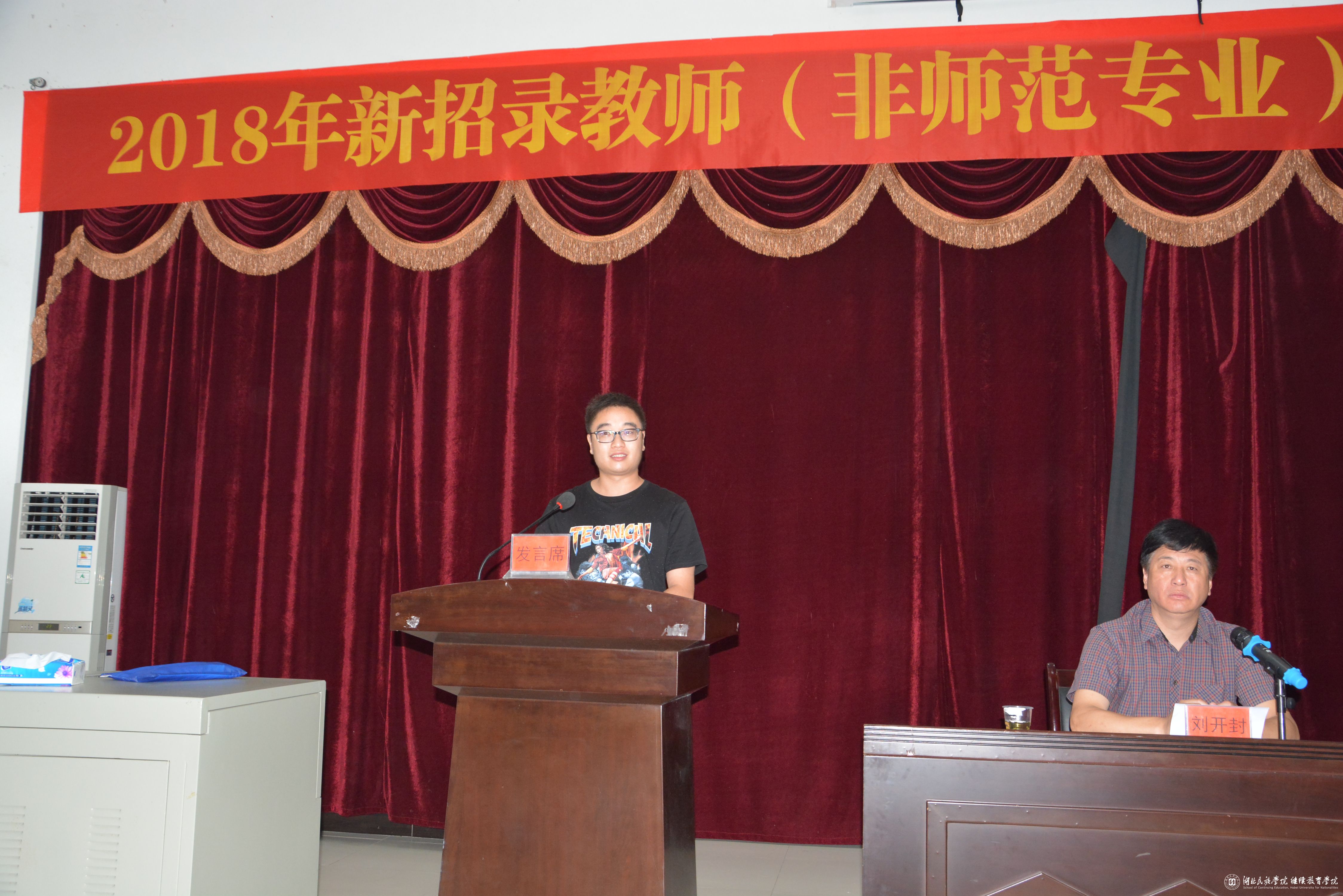 雷随斌致欢迎辞。他代表继续教育学院向全体参训学员表示热烈欢迎,并对大家成功地通过层层选拨,成为一名光荣的人民教师表示热烈的祝贺。他指出,开展新招录教师(非师范专业)岗位技能培训,是我校深入贯彻党的十九大精神和党的教育方针,落实“湖北省中小学教师素质提升工程”项目要求,培育“四有”好老师的重要举措。本次培训,学校将严格按照《湖北省教育厅关于做好2018年省级中小学幼儿园教师培训工作的通知》要求,认真落实培训内容,增强针对性和实效性,提供优良的教育教学条件和服务,以保证大家圆满完成学习任务。最后,他还对参训学员提出了期望,并致以诚挚祝福。