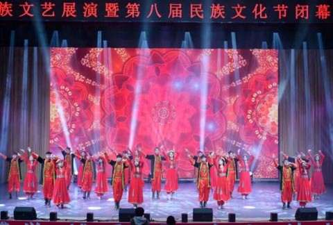 本网讯(通讯员  古海尔尼沙·艾合买提)12月1日晚上,中华民族文艺展演暨第八届民族文化节闭幕式晚会在新区多功能厅隆重举行。教师教育学院学工办古海尔尼沙·艾合买提老师带领我院47名各民族学生代表表演大型舞蹈节目《中华全家福》。