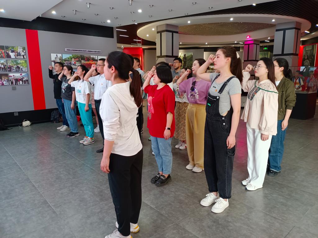 师生党员在陈列馆内重温入党誓词