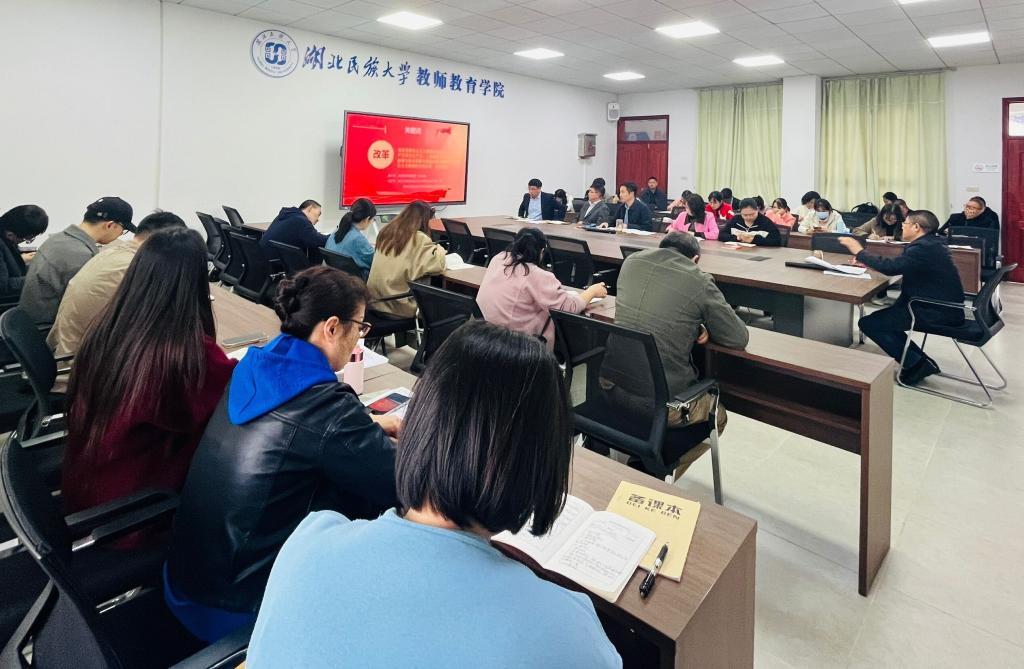 11月14日,365电子娱乐官方网站学习贯彻党的二十届三中全会精神宣讲团成员、教师教育学院党总支书记宁华宗在学院会议室为全体教职工带来了一场名为《把握关键时期 用好关键一招——继续以全面深化改革推进中国式现代化》的专题宣讲。