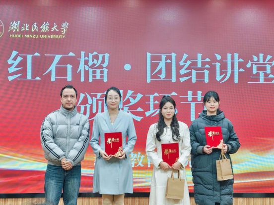 经过激烈的角逐,最终龙腾婕获得“红石榴·团结讲堂”年度总决赛一等奖(金牌主讲人),王兴艳、万文静获得二等奖(银牌主讲人),丁雪琴、张雅涵、张雨景获得三等奖(铜牌主讲人),伊丽米努尔·麦提阿卜杜拉、罗熙晗获得优秀奖(优秀主讲人)。