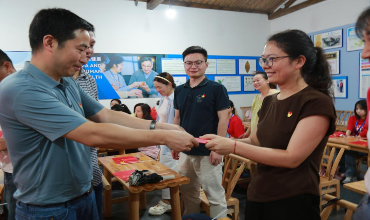 党总支书记宁华宗同志为全体党员颁发《党章》