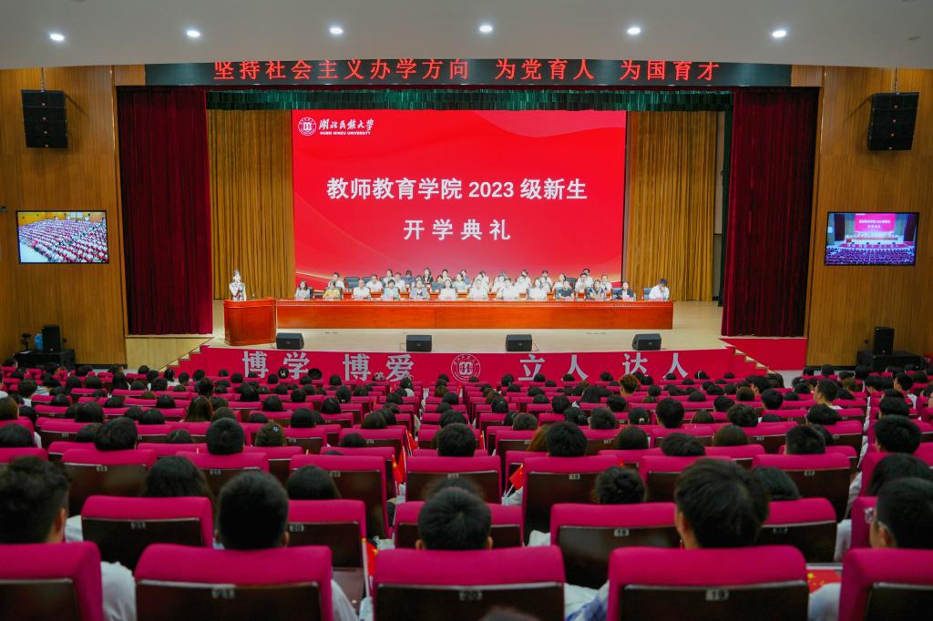 本网讯(通讯员 刘竑均)金秋九月,天高云淡,桂花园里,青春飞扬。9月26日晚上19:00,365电子娱乐官方网站教师教育学院2023级新生开学典礼在新区工程实验实训中心多功能厅举行,625名2023级民族预科生和小学教育本科生共同开启在365电子娱乐官方网站的学业新里程。开学典礼由学院党总支书记宁华宗主持,院长谭华、党委组织员刘际华、党总支副书记郑艺、副院长黄力以及学院全体教师出席。
