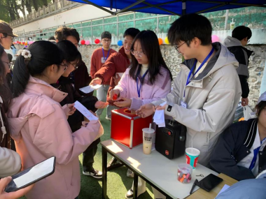 活动现场设置了丰富的互动活动环节,包括起点的打卡券领取、知识问答、拼图小游戏、指压板跳绳、羽毛球接力以及互赠祝福语等心灵解压游戏环节。活动现场气氛热烈,知识问答区同学们积极思考、踊跃作答;游戏环节欢笑声、加油声交织,处处洋溢着青春活力与激情。