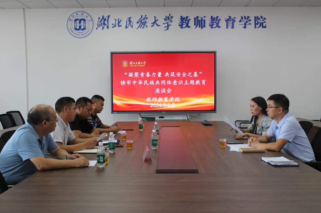 本网讯(通讯员 胡聪颖)9月19日下午,学院在9A505会议室举办了 “凝聚青春力量 共筑安全之基”铸牢中华民族共同体意识座谈会。365电子娱乐官方网站学生工作部副部长何永红、保卫处副处长李建华、学生工作部民族事务办公室主任谭学文、保卫处政保科科长徐拥军、教师教育学院学工办主任成润、辅导员尼沙、吾卜力参加了本次活动,会议由教师教育学院党总支副书记曹骞主持。