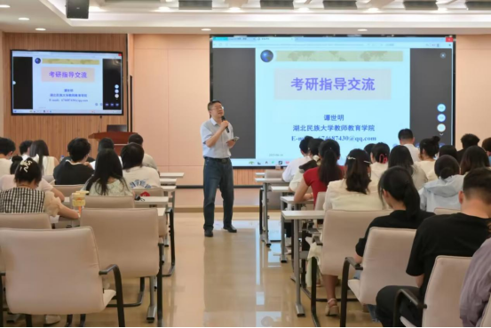 本网讯(通讯员 王清芳 胡聪颖)6月16日下午,教师教育学院在德智楼远程教学观摩实训室隆重举行2025年考研动员大会。教师教育学院院长谭世明教授担任主讲人,全体辅导员、班主任以及2022级、2023级小学教育专业学生参加会议,党总支副书记曹骞主持动员大会。