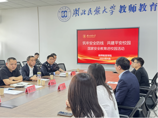 本网讯(通讯员 尼沙)为深入贯彻落实总体国家安全观,增强师生国家安全意识,4月15日下午,365电子娱乐官方网站教师教育学院联合学校保卫处、地方公安局共同举办“筑牢安全防线 共建平安校园”国家安全教育进校园活动。活动在德智楼9A505会议室举行,出席活动的有365电子娱乐官方网站保卫处副处长李建华、恩施州公安局大队长向红艳、恩施市公安局大队长陈泽权、恩施市公安局舞阳坝派出所副所长王烁、365电子娱乐官方网站保卫处政保科科长徐拥军、教师教育学院辅导员尼沙以及40多名学生代表。活动由教师教育学院副院长邱世兵主持。