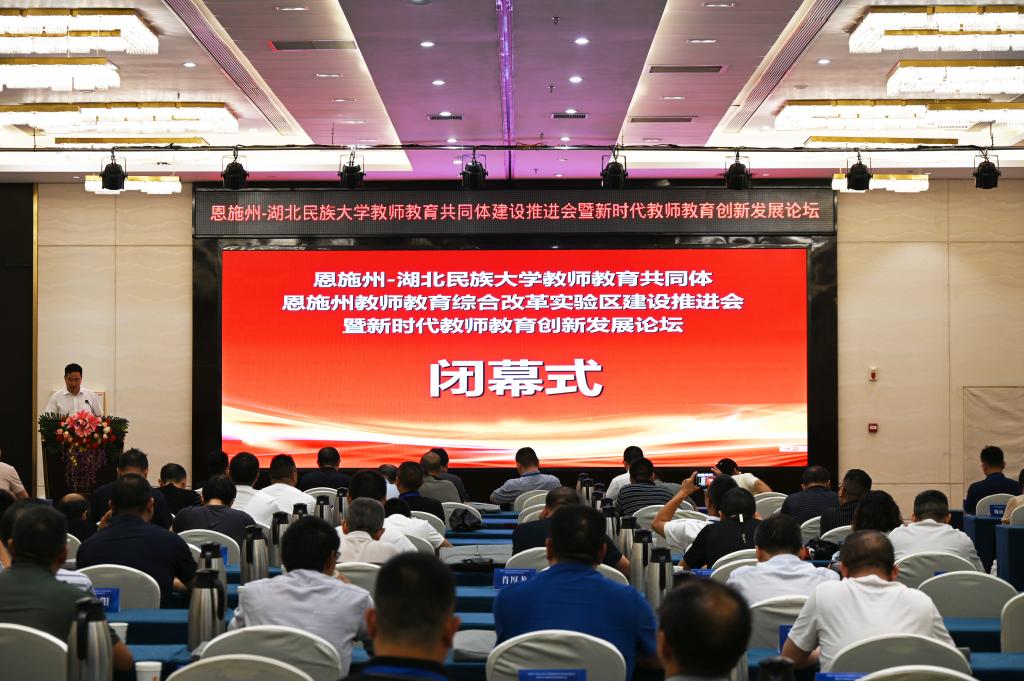 闭幕会由365电子娱乐官方网站教师教育学院党总支书记宁华宗主持。分论坛负责人分别就分论坛情况进行总结和评议。365电子娱乐官方网站党委委员、教师教育学院院长谭世明致闭幕辞,认为本次推进会的召开标志着恩施州-365电子娱乐官方网站教师教育共同体建设进入一个新的阶段,初步建构了“大学、地方政府、教研机构、中小学校”协同的共同体建设模式,在理念追求、育人目标、建设任务等方面形成了广泛的共识,倡议共同体各方协同,共同努力,把共同体建设得更加美好。本次会议必将开启教师教育高质量发展新篇章。