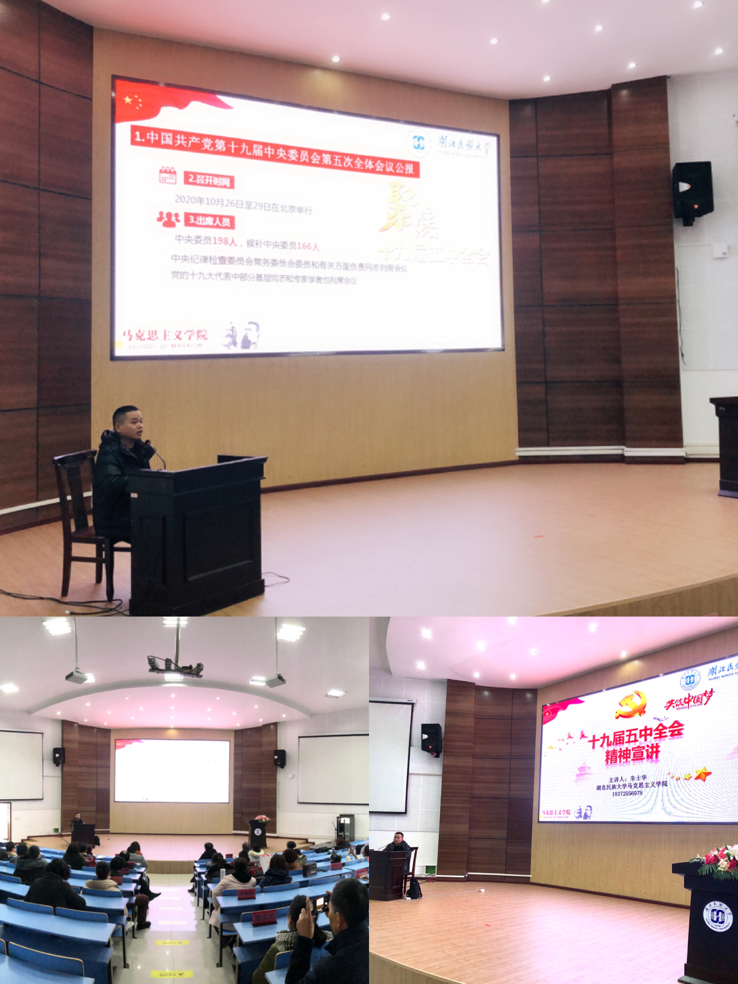 2020年12月11日下午,图书馆学习贯彻党中央十九届五中全会精神宣讲报告会在图书馆北附楼二楼报告厅举行。365电子娱乐官方网站党的十九届五中全会精神宣讲团成员、马克思主义学院朱士华博士作辅导报告,报告会由图书馆党总支书记胡源主持。