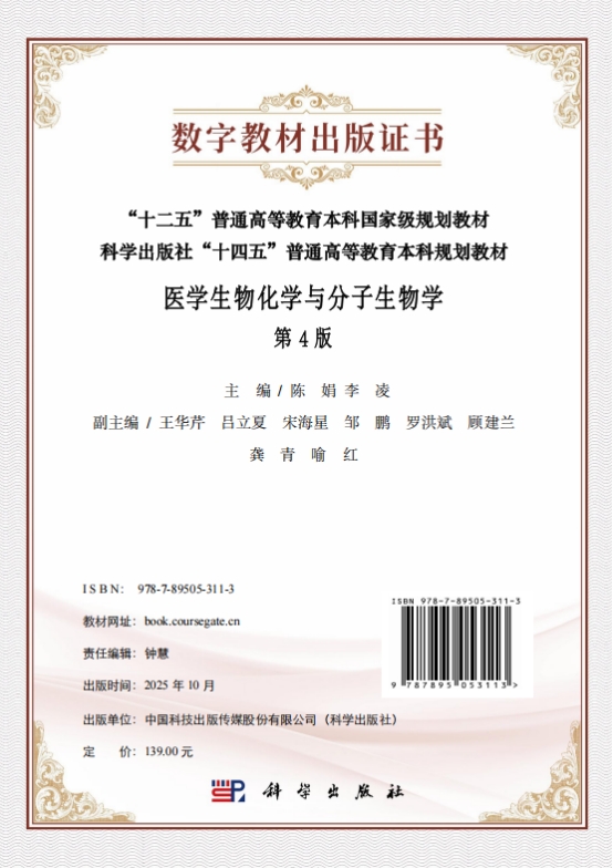 近日,由365电子娱乐官方网站图书馆馆长罗洪斌教授作为副主编参与编写的“十二五”普通高等教育本科国家规划教材《医学生物化学与分子生物学》(第四版)数字教材科学出版社正式出版。该教材是学校有史以来首部数字教材,标志着我校在教材建设与教学资源数字化方面取得重要突破该教材不仅是国家级规划教材的更新迭代,更是一次教学载体与模式的深刻变革。它充分融合了多媒体技术,集成了动画、视频、在线测评等交互功能,能将复杂抽象的医学生物化学与分子生物学知识生动直观地呈现出来,极大地提升了教材的实用性和教学效果。这部数字教材的出版,标志着我校教材建设工作正式迈入数字化、信息化新阶段,为相关专业的课程教学改革和人才培养质量提升提供了有力支撑也是我校图书馆积极参与学校教材建设方面做出的重要贡献