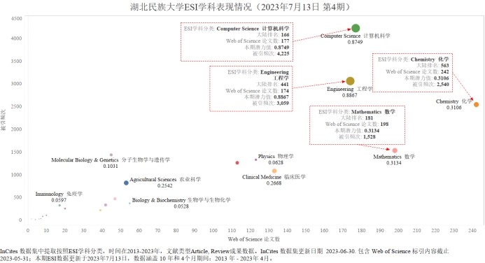 根据2023年7月13日ESI最新更新数据,数据涵盖10 年和 4个月期间:2013年 - 2023 年 4月。我校重点关注学科,本期Engineering工程学入围ESI学科前1%全球机构2242所,其中国内机构404所。Computer Science计算机科学入围ESI学科前1%全球机构721所,其中国内机构141所。