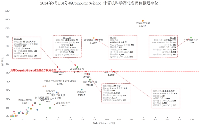 表4 Computer Science 计算机科学湖北省阈值接近单位情况