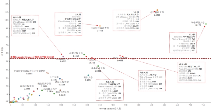 表4 Computer Science 计算机科学湖北省阈值接近单位情况