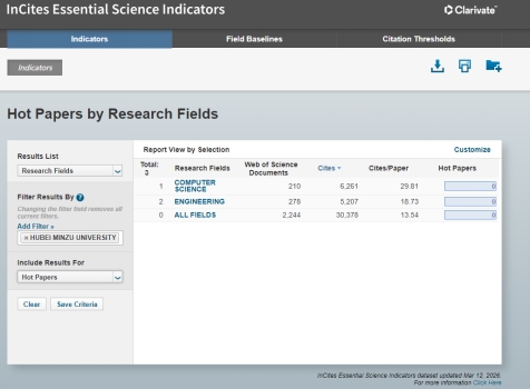 热点论文(Hot Papers):过去2年发表的论文,近2个月的被引次数排在该学科排名前0.1%的论文。