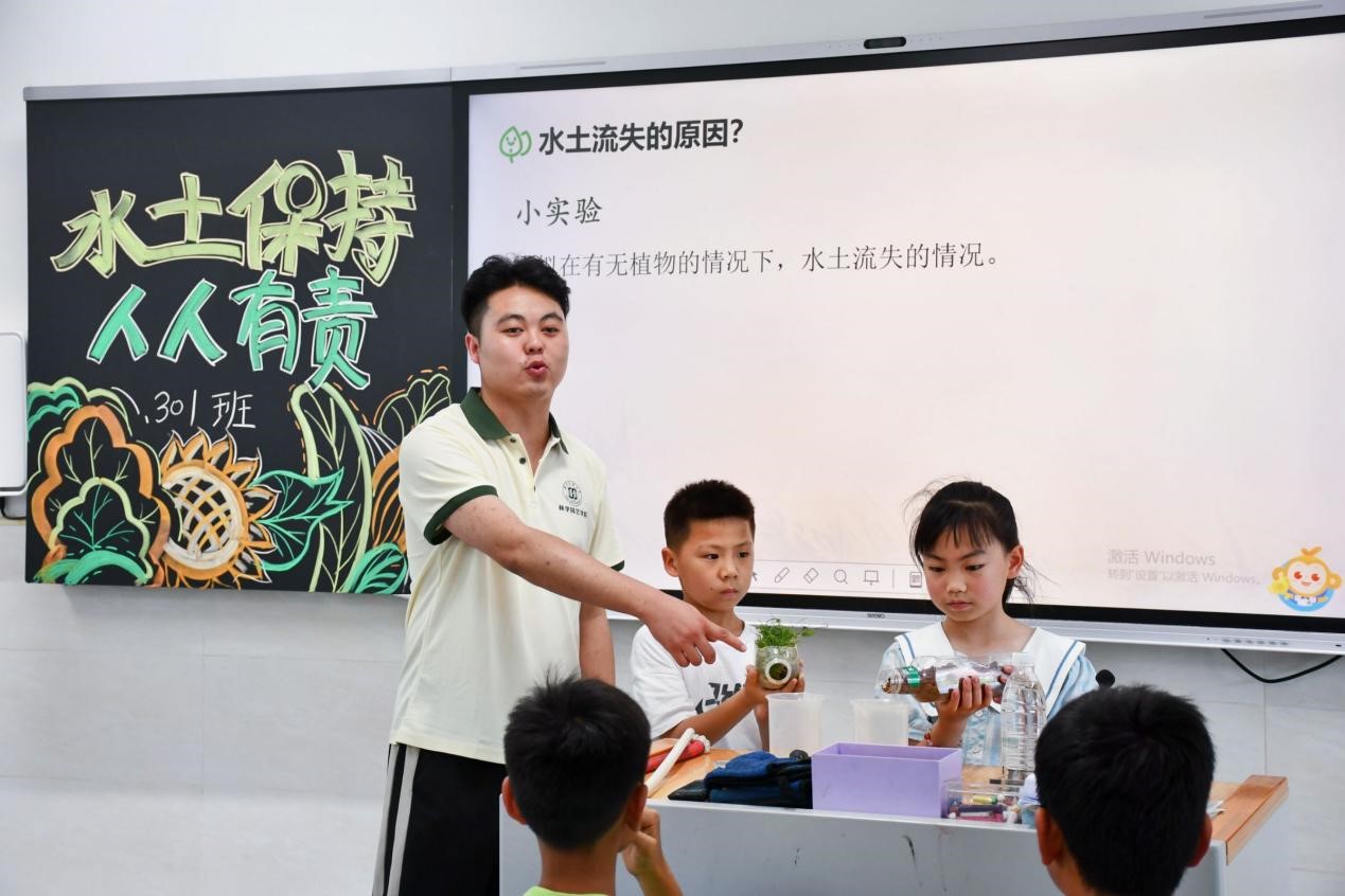 在这节自然课堂里,讲师团宣讲员通过视频动画等展现一代一代治沙人如何将沙漠变绿洲,通过板画讲解森林的结构,用昆虫、年轮、多肉植物来给同学们讲解动植物奥妙,带领同学们用薜荔手搓凉粉,还带着同学们做水土保持的小实验等。课堂上,各位讲师们用多种多样的教学方式给同学们带来了丰富多彩的自然科普,激发了同学们探索自然,保护自然的科学意识。
