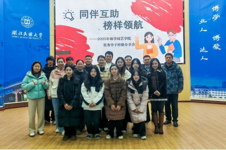 (本网讯 通讯员 见习通讯员汪峰 王浩宁/文 向诗瑶/图为发挥身边榜样的示范引领作用,12月14日,学院于图书馆二楼学术报告厅举办“同伴互助·榜样领航”主题分享会。党总支书记姚兰,副书记胡海剑,学生科科长胡靖偲,团委副书记穆小雪,辅导员邢续净,大一年级各班班主任出席,学院全体大一学生参与。