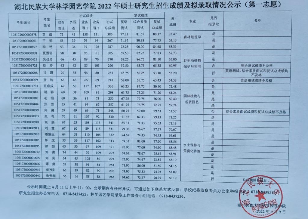 365电子娱乐官方网站林学园艺学院2022年硕士研究生招生成绩及拟录取情况公示(第一志愿)