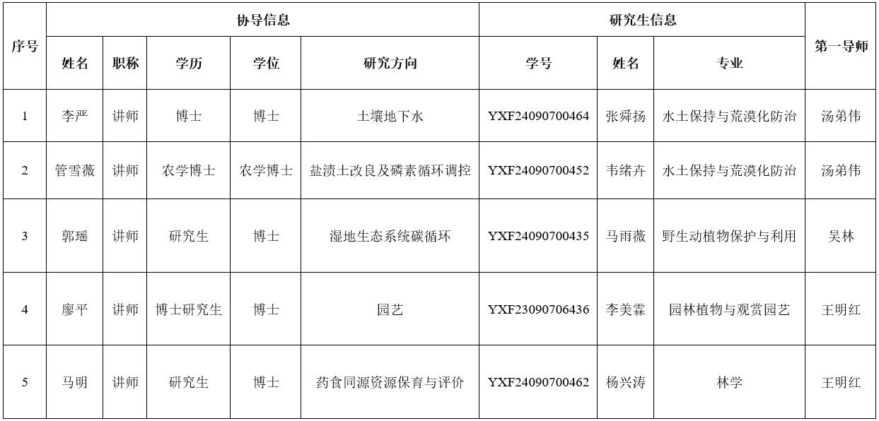林学园艺学院拟聘协助指导硕士研究生导师的公示(二)